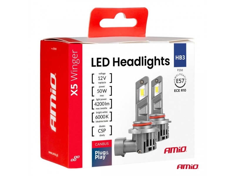 Amio - Λάμπες Led HB3 Τύπου Series X5 Winger Τάση Λειτουργίας 12V Απόδοσης 50W Can-bus Για Επιβατικά Αυτοκίνητα - 2 τεμ. (03948/AM)