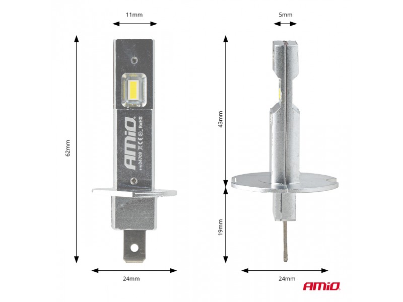 Amio - Λαμπτήρες Led Φώτων Εμπρός Τύπου H1 Βάση P14.5s Τάση Λειτουργίας 12V Απόδοσης 20W (2920lm) Series H25 Canbus 6000K Για Επιβατικά Αυτοκίνητα - 2 τεμ. (04709/AM)