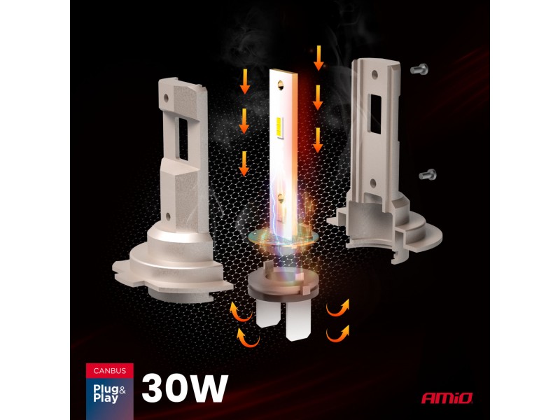 Amio - Λαμπτήρες Led Φώτων Εμπρός Τύπου H7/H18 Βάση PX26d/PY26d-1 Τάση Λειτουργίας 12V Απόδοσης 30W (2710lm) Series H25 Canbus 6000K Για Επιβατικά Αυτοκίνητα - 2 τεμ. (04712/AM)