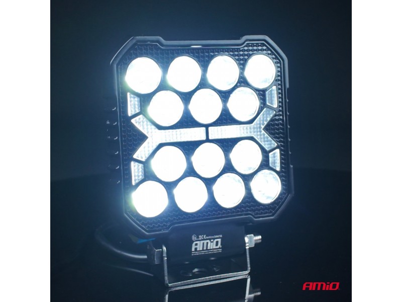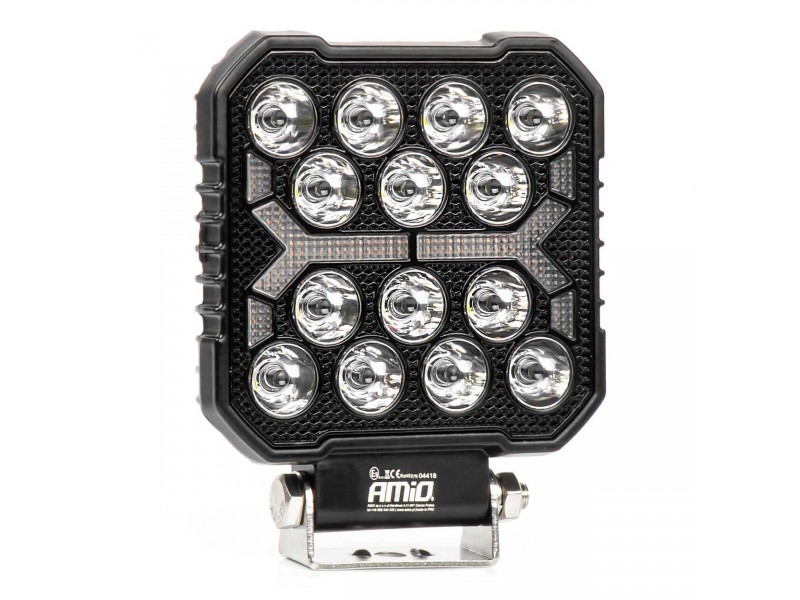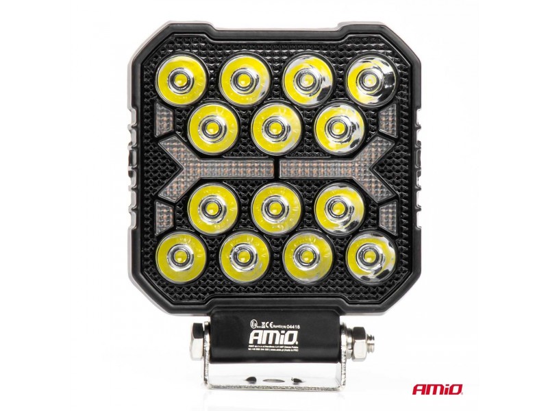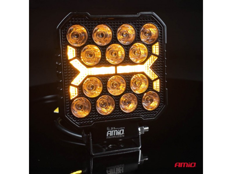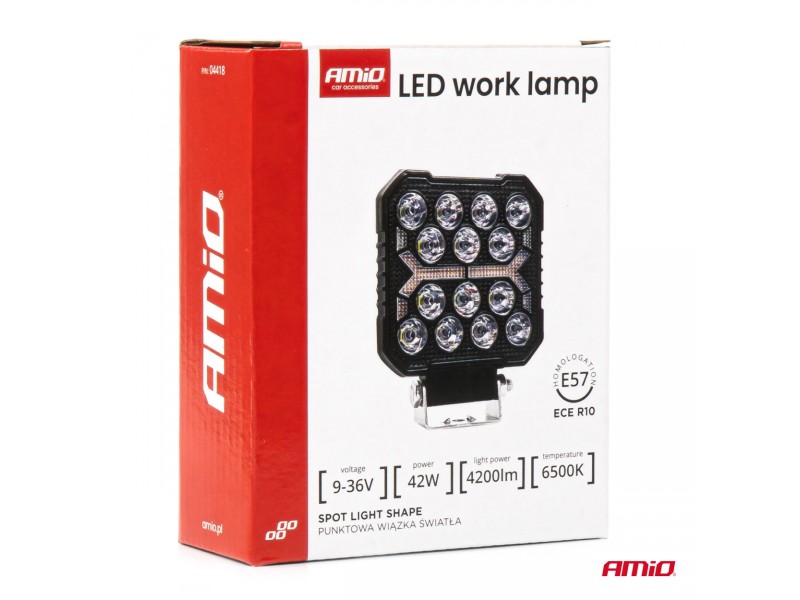 Amio - Led Λάμπα Εργασίας 42W 4200lm 6500K Με Προειδοποιητικό Φως (Λευκό + Κίτρινο) – 9–36V Spot Αλουμινένια - 1 τεμ. - (04418/AM)