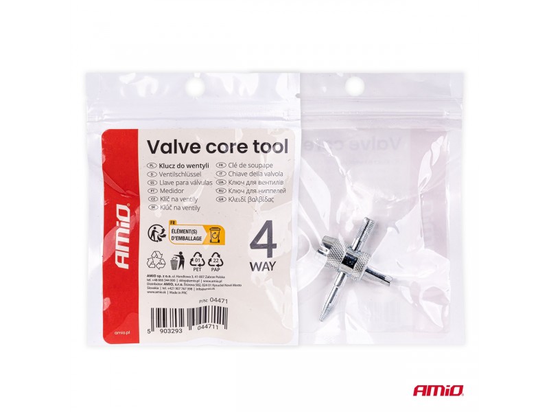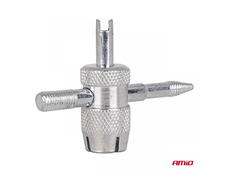 Amio - Πολυεργαλείο Βαλβίδας Ελαστικών 4-σε-1 (4-Way Valve Tool) – Για Αυτοκίνητα, Μοτοσυκλέτες & Ποδήλατα - 1 τεμ. (04471/AM)