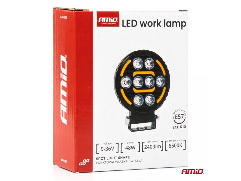 Amio - Προβολέας Εργασίας Led AWL80 Spot 48W 2400lm Με Λευκό + Κίτρινο Φώς προειδοποίησης9/36V - 1 τεμ. (04424/AM)
