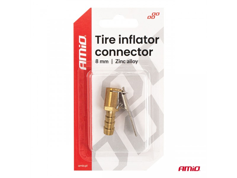 Amio - Προσαρμογέας Ακροφυσίου (Ρακόρ) Φουσκώματος Ελαστικών για σωλήνα διαμέτρου 8mm κατασκευασμένος από κράμα ψευδαργύρου - 1 τεμ. (04494/AM)