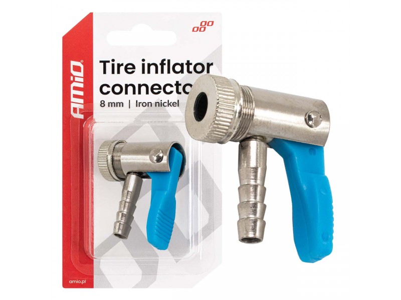 Amio - Προσαρμογέας Ακροφυσίου (Ρακόρ) Φουσκώματος Ελαστικών Για Σωλήνα Διαμέτρου 8mm Κατασκευασμένος Από Κράμα Σιδήρου Με Επικάλυψη Νικελίου - 1 τεμ. (04498/AM)