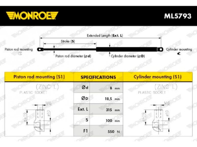 ML5793 ΑΜΟΡΤΙΣΕΡ ΠΙΣΩ ΠΑΡΜΠΡΙΖ ΑΡ/ΔΕΞ MONROE ML5793 - Αμορτισέρ αερίου, πίσω παρμπρίζ