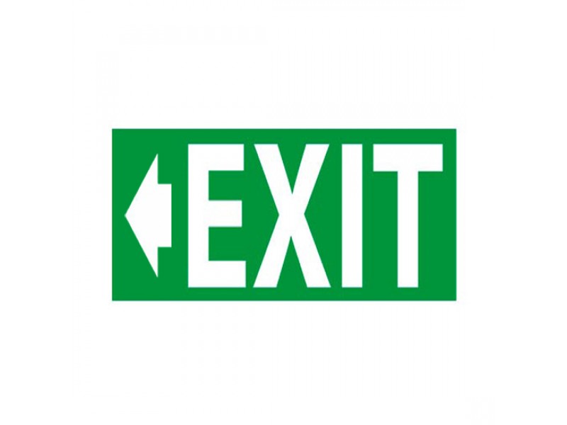 Αυτοκόλλητο σήμα 'EXIT' με κατεύθυνση αριστερά, διαστάσεων 16x10cm. Κατάλληλο για σήμανση εξόδων σε κτίρια, διαδρόμους και χώρους στάθμευσης. Κατασκευασμένο από ανθεκτικό υλικό, τοποθετείται εύκολα σε λείες επιφάνειες.