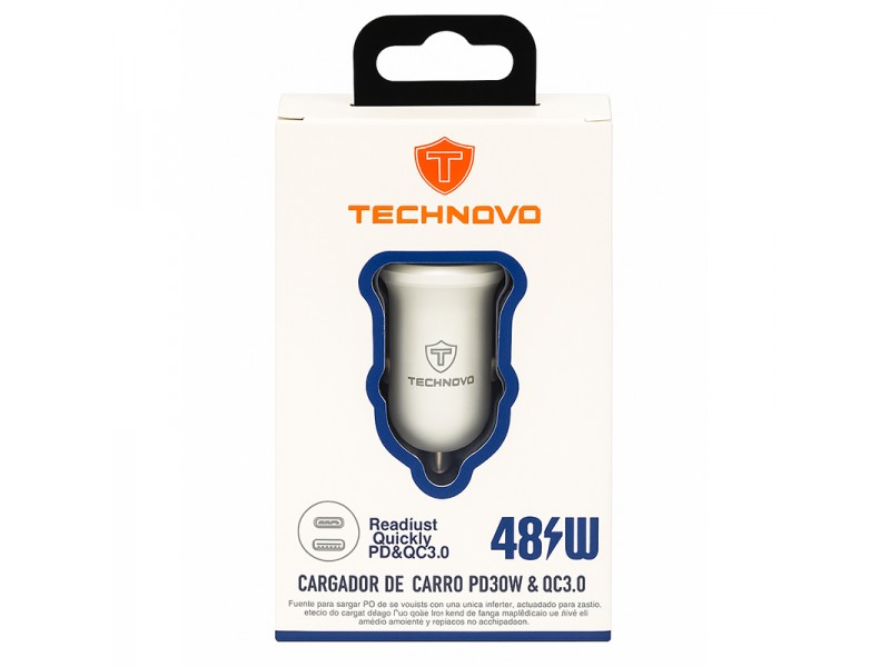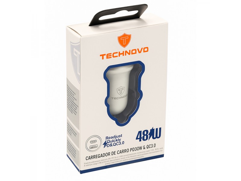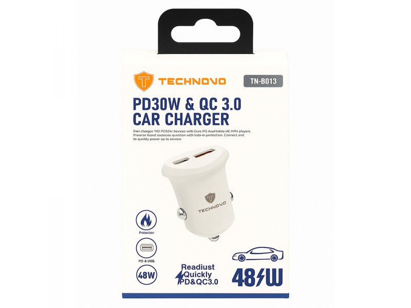 Φορτιστής Αναπτήρα Αυτοκινήτου Technovo TN-B013 Με 1 Θύρα Usb Και 1 Θύρα USB-C 12-24V 3A Λευκός 1 Τεμάχιο
