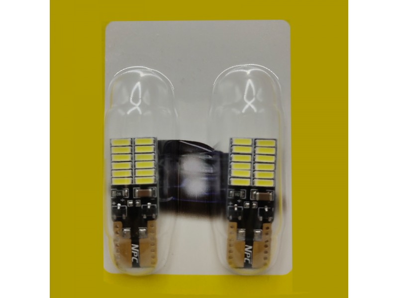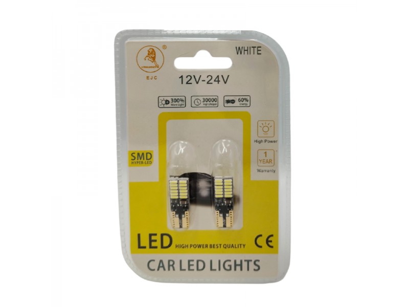 Σετ 2 ψείρες T10 με 24 LED (τύπος 106335-100455), συμβατές με 12-24V. Παρέχουν ισχυρό λευκό φως, ιδανικό για φώτα πινακίδας, θέσης ή εσωτερικού φωτισμού. Με χαμηλή κατανάλωση ρεύματος, μεγάλη διάρκεια ζωής και ελάχιστη θερμότητα — εύκολη εγκατάσταση σε υπάρχουσες βάσεις T10 χωρίς τροποποιήσεις.