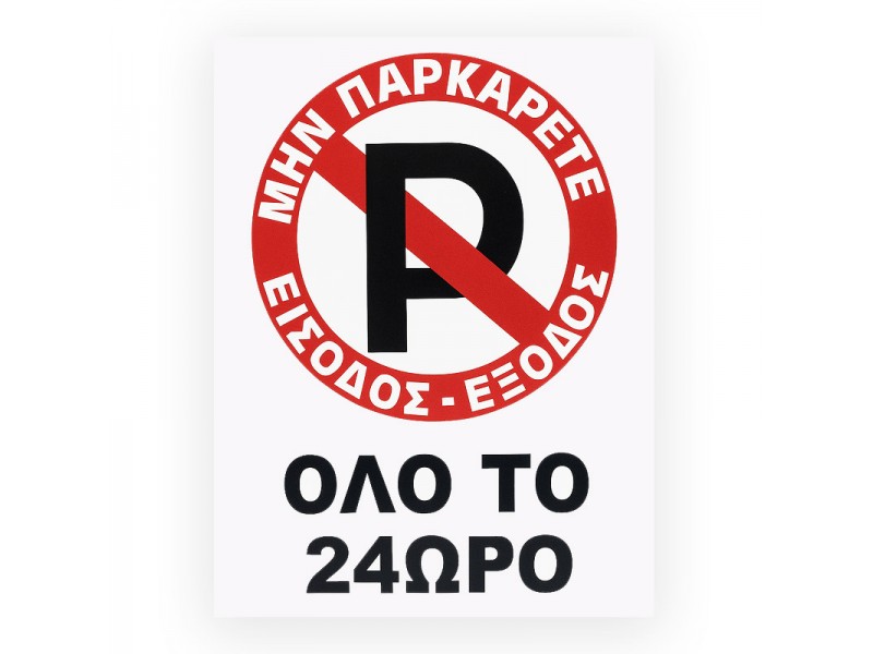 Πινακίδα ΜΗΝ ΠΑΡΚΑΡΕΤΕ ΕΙΣΟΔΟΣ-ΕΞΟΔΟΣ ΟΛΟ ΤΟ 24ΩΡΟ –