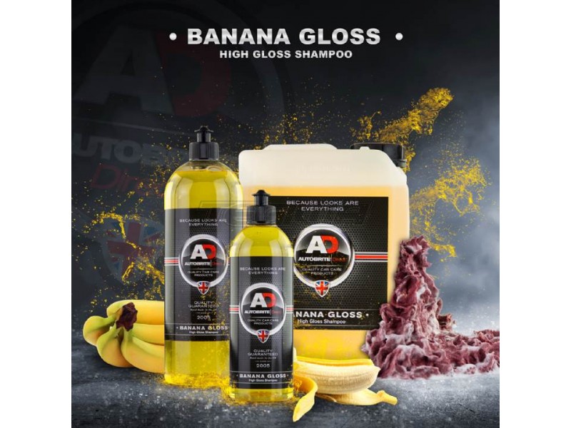 Το Banana Gloss, σαμπουάν είναι ένα εξαιρετικό σαμπουάν υψηλής γυαλάδας. Περιέχει τα καλύτερα συστατικά για να καθαρίσει κάθε είδους βρωμιά από το χρώμα σας. Για γενική χρήση, η αναλογία αραίωσης του Banana Gloss 500-1 μεταφράζεται σε 20 ml ή 2 γεμάτα καπάκια ανά κάδο 18 λίτρων. Αφού προσθέσετε το σαμπουάν που έχετε επιλέξει, ανακατέψτε το διάλυμα με μια κινούμενη πηγή νερού, π.χ. εύκαμπτο σωλήνα ή πλυστικό πίεσης για να επιτύχετε το απαιτούμενο επίπεδο αφρού.