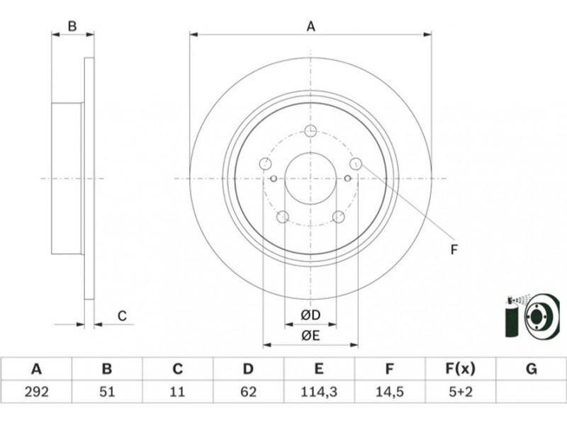 Criteries : Αριθμός οπών 5, Διάμετρος κέντρωσης [mm] 62, Διάμετρος κύκλου οπής [mm] 114,3, Διάμετρος οπής έως [mm] 14,5, Ελάχιστο πάχος [mm] 9,5, Εξωτερική διάμετρος [mm] 292, Επιφάνεια με επίστρωση, Πάχος δισκόπλακας [mm] 11, πληρεί τις προδιαγραφές ECE ECE-R90, Τύπος δισκόφρενων πλήρες, Υψος [mm] 51