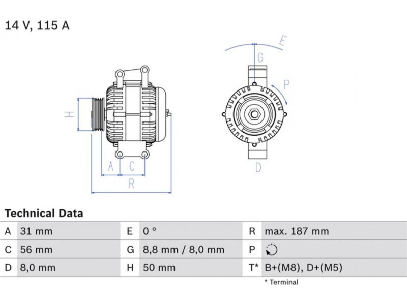 Criteries : Απόσταση από την τροχαλία ιμάντα προς τη γεννήτρια [mm] 31,4, Διάμ. τροχαλίας ιμάντα [mm] 50, Επαφή B2+(M8), Επαφή D+(M5), Μήκος [mm] 187, Παλαιό εξάρτημα , Παραλλαγή γεννήτριας εξαιρουμ. αντλίας υποπίεσης, Πλήθος εγκοπών 6, προτεινόμενη επέκταση επισκευής Ιμάντας/ιμάντας poly-V, Ρεύμα φόρτισης γεννήτριας [A] 115, Τάση [V] 14, Τρόπος στερέωσης Άμεση στερέωση, Τροχαλίες ιμάντων με τροχαλία ιμάντα ελεύθ. κίνησης, Φορά περιστροφής Φορά περιστροφής προς τα δεξιά