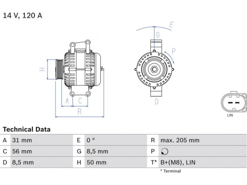 Criteries : ID παραλλαγής σύνδεσης PL166, Απόσταση από την τροχαλία ιμάντα προς τη γεννήτρια [mm] 31,4, Διάμ. τροχαλίας ιμάντα [mm] 50, Επαφή B1+(M8), Επαφή LIN, Μήκος [mm] 205, Παλαιό εξάρτημα , Παραλλαγή γεννήτριας εξαιρουμ. αντλίας υποπίεσης, Πλήθος εγκοπών 6, προτεινόμενη επέκταση επισκευής Ιμάντας/ιμάντας poly-V, Ρεύμα φόρτισης γεννήτριας [A] 120, Τάση [V] 14, Τρόπος στερέωσης Άμεση στερέωση, Τροχαλίες ιμάντων με τροχαλία ιμάντα ελεύθ. κίνησης, Φορά περιστροφής Φορά περιστροφής προς τα δεξιά