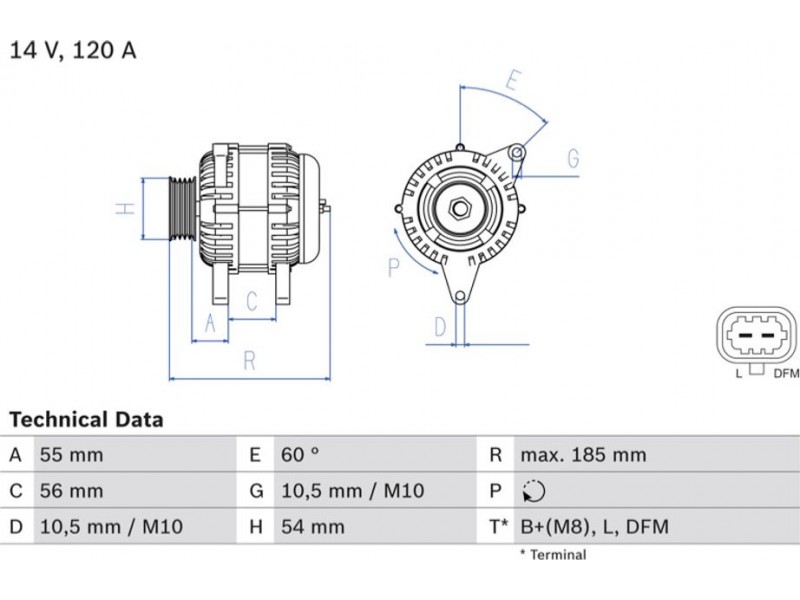 Criteries : ID παραλλαγής σύνδεσης PL75, Απόσταση από την τροχαλία ιμάντα προς τη γεννήτρια [mm] 55, Διάμ. τροχαλίας ιμάντα [mm] 54, Επαφή B2+(M8),L,DFM, Μήκος [mm] 185, Παλαιό εξάρτημα , Παραλλαγή γεννήτριας εξαιρουμ. αντλίας υποπίεσης, Πλήθος εγκοπών 5, προτεινόμενη επέκταση επισκευής Ιμάντας/ιμάντας poly-V, Ρεύμα φόρτισης γεννήτριας [A] 120, Τάση [V] 14, Τρόπος στερέωσης Διπλός μοχλός κέντρου περιστροφ, Τροχαλίες ιμάντων με τροχαλία ιμάντα ελεύθ. κίνησης, Φορά περιστροφής Φορά περιστροφής προς τα δεξιά