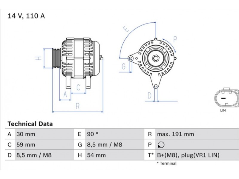 Criteries : ID παραλλαγής σύνδεσης PL166-1 PIN, Απόσταση από την τροχαλία ιμάντα προς τη γεννήτρια [mm] 30, Διάμ. τροχαλίας ιμάντα [mm] 53,5, Επαφή B+(M8)PLUG(VR1 LIN), Μήκος [mm] 191, Παλαιό εξάρτημα , Παραλλαγή γεννήτριας εξαιρουμ. αντλίας υποπίεσης, Πλήθος εγκοπών 6, προτεινόμενη επέκταση επισκευής Ιμάντας/ιμάντας poly-V, Ρεύμα φόρτισης γεννήτριας [A] 110, Τάση [V] 14, Τρόπος στερέωσης Διπλός μοχλός κέντρου περιστροφ, Τροχαλίες ιμάντων με τροχαλία ιμάντα ελεύθ. κίνησης, Φορά περιστροφής Φορά περιστροφής προς τα δεξιά