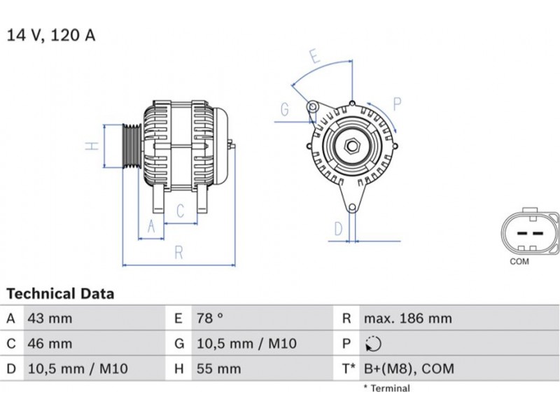 Criteries : ID παραλλαγής σύνδεσης PL137, Απόσταση από την τροχαλία ιμάντα προς τη γεννήτρια [mm] 43, Διάμ. τροχαλίας ιμάντα [mm] 55, Επαφή B+(M8),COM, Μήκος [mm] 186, Παλαιό εξάρτημα , Παραλλαγή γεννήτριας εξαιρουμ. αντλίας υποπίεσης, Πλήθος εγκοπών 6, προτεινόμενη επέκταση επισκευής Ιμάντας/ιμάντας poly-V, Ρεύμα φόρτισης γεννήτριας [A] 120, Τάση [V] 14, Τρόπος στερέωσης Διπλός μοχλός κέντρου περιστροφ, Τροχαλίες ιμάντων με τροχαλία ιμάντα ελεύθ. κίνησης, Φορά περιστροφής Φορά περιστροφής προς τα δεξιά