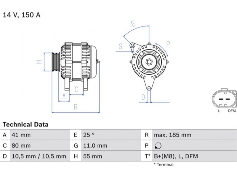 Criteries : ID παραλλαγής σύνδεσης PL61, Απόσταση από την τροχαλία ιμάντα προς τη γεννήτρια [mm] 41, Διάμ. τροχαλίας ιμάντα [mm] 55, Επαφή B+(M8),L,DFM, Μήκος [mm] 185, Παλαιό εξάρτημα , Παραλλαγή γεννήτριας εξαιρουμ. αντλίας υποπίεσης, Πλήθος εγκοπών 7, προτεινόμενη επέκταση επισκευής Ιμάντας/ιμάντας poly-V, Ρεύμα φόρτισης γεννήτριας [A] 150, Τάση [V] 14, Τρόπος στερέωσης Διπλός μοχλός κέντρου περιστροφ, Τροχαλίες ιμάντων με πολλαπλή τροχαλία ιμάντα, Φορά περιστροφής Φορά περιστροφής προς τα δεξιά