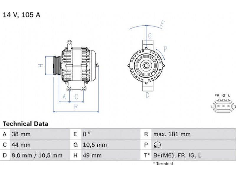 Criteries : ID παραλλαγής σύνδεσης PL74, Απόσταση από την τροχαλία ιμάντα προς τη γεννήτρια [mm] 38, Διάμ. τροχαλίας ιμάντα [mm] 49, Επαφή B+(M6),FR,IG,L, Μήκος [mm] 181, Παλαιό εξάρτημα , Παραλλαγή γεννήτριας εξαιρουμ. αντλίας υποπίεσης, Πλήθος εγκοπών 6, προτεινόμενη επέκταση επισκευής Ιμάντας/ιμάντας poly-V, Ρεύμα φόρτισης γεννήτριας [A] 105, Τάση [V] 14, Τρόπος στερέωσης Άμεση στερέωση, Τροχαλίες ιμάντων με πολλαπλή τροχαλία ιμάντα, Φορά περιστροφής Φορά περιστροφής προς τα δεξιά