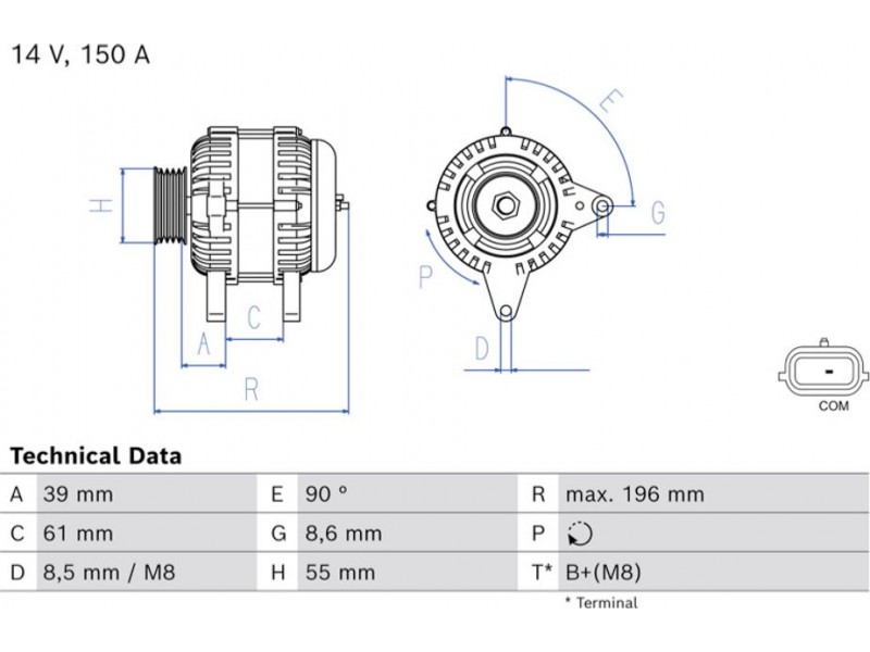 Criteries : ID παραλλαγής σύνδεσης 131, Απόσταση από την τροχαλία ιμάντα προς τη γεννήτρια [mm] 39, Διάμ. τροχαλίας ιμάντα [mm] 55, Επαφή B+(M8), Μήκος [mm] 196, Παλαιό εξάρτημα , Παραλλαγή γεννήτριας εξαιρουμ. αντλίας υποπίεσης, Πλήθος εγκοπών 6, προτεινόμενη επέκταση επισκευής Ιμάντας/ιμάντας poly-V, Ρεύμα φόρτισης γεννήτριας [A] 150, Τάση [V] 14, Τρόπος στερέωσης Διπλός μοχλός κέντρου περιστροφ, Τροχαλίες ιμάντων με τροχαλία ιμάντα ελεύθ. κίνησης, Φορά περιστροφής Φορά περιστροφής προς τα δεξιά