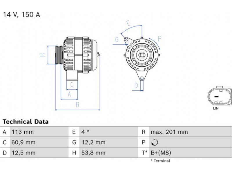 Criteries : ID παραλλαγής σύνδεσης 174, Απόσταση από την τροχαλία ιμάντα προς τη γεννήτρια [mm] 113, Διάμ. τροχαλίας ιμάντα [mm] 53,8, Επαφή B+(M8), Μήκος [mm] 201, Παλαιό εξάρτημα , Παραλλαγή γεννήτριας εξαιρουμ. αντλίας υποπίεσης, Πλήθος εγκοπών 6, προτεινόμενη επέκταση επισκευής Ιμάντας/ιμάντας poly-V, Ρεύμα φόρτισης γεννήτριας [A] 150, Τάση [V] 14, Τρόπος στερέωσης Μονός μοχλός κέντρου περιστροφή, Τροχαλίες ιμάντων με τροχαλία ιμάντα ελεύθ. κίνησης, Φορά περιστροφής Φορά περιστροφής προς τα δεξιά