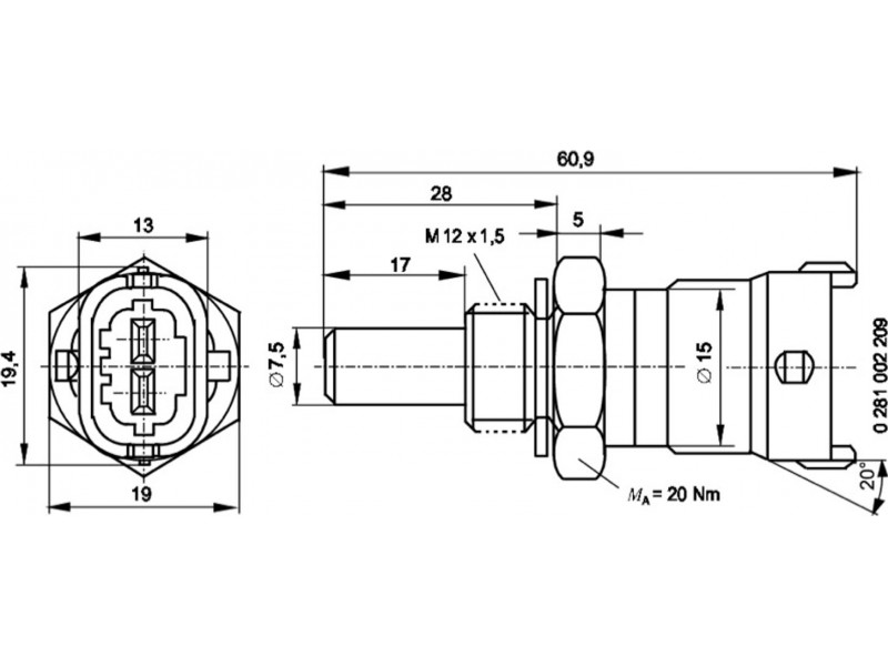 Bosch Αισθητήρας, θερμοκρ. Ψυκτικού Υγρού - 0 281 002 209