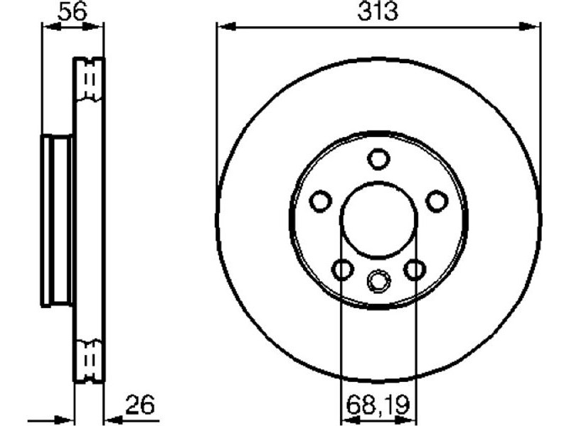 Criteries : Αριθμός οπών 5, Διάμετρος κέντρωσης [mm] 68,15, Διάμετρος κύκλου οπής [mm] 112, Διάμετρος οπής έως [mm] 17, Ελάχιστο πάχος [mm] 22, Εξωτερική διάμετρος [mm] 313, Επεξεργασία υψηλής ανθράκωσης, Επιφάνεια με επίστρωση, Πάχος δισκόπλακας [mm] 26, πληρεί τις προδιαγραφές ECE ECE-R90, Τύπος δισκόφρενων αεριζόμενο, Υψος [mm] 56,4