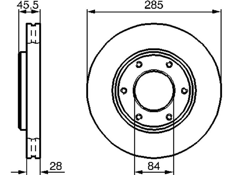 Criteries : Αριθμός οπών 6, Διάμετρος κέντρωσης [mm] 84,05, Διάμετρος κύκλου οπής [mm] 127, Ελάχιστο πάχος [mm] 26, Εξωτερική διάμετρος [mm] 285, Επιφάνεια λαδωμένο, Πάχος δισκόπλακας [mm] 28, πληρεί τις προδιαγραφές ECE ECE-R90, Τύπος δισκόφρενων αεριζόμενο, Τύπος δισκόφρενων εσωτερικά αεριζόμενο, Υψος [mm] 45,5