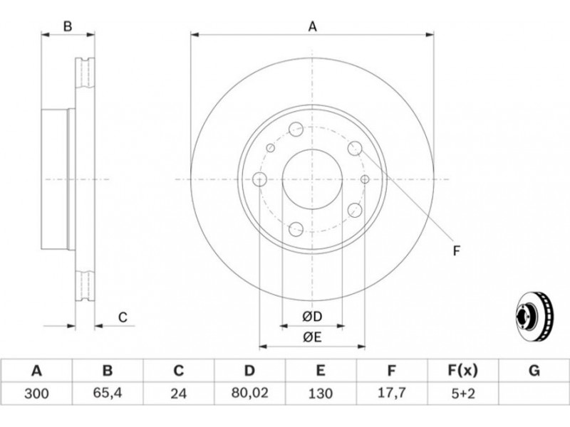 Criteries : Αριθμός οπών 5, Διάμετρος κέντρωσης [mm] 80,02, Διάμετρος κύκλου οπής [mm] 130, Διάμετρος οπής έως [mm] 17,7, Ελάχιστο πάχος [mm] 21,9, Εξωτερική διάμετρος [mm] 300, Επιφάνεια λαδωμένο, Πάχος δισκόπλακας [mm] 24, πληρεί τις προδιαγραφές ECE ECE-R90, Τύπος δισκόφρενων αεριζόμενο, Τύπος δισκόφρενων εσωτερικά αεριζόμενο, Υψος [mm] 65,4