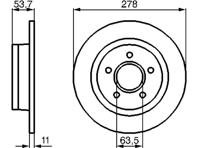 Criteries : Αριθμός οπών 5, Διάμετρος κέντρωσης [mm] 63,55, Διάμετρος κύκλου οπής [mm] 108, Διάμετρος οπής έως [mm] 13,8, Ελάχιστο πάχος [mm] 10, Εξωτερική διάμετρος [mm] 278, Επιφάνεια λαδωμένο, Πάχος δισκόπλακας [mm] 11, πληρεί τις προδιαγραφές ECE ECE-R90, Τύπος δισκόφρενων πλήρες, Υψος [mm] 53,8
