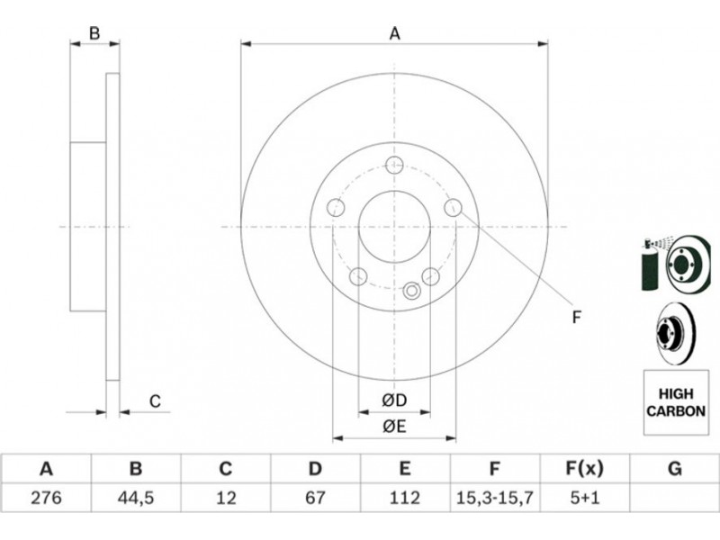 Criteries : Αριθμός οπών 5, Διάμετρος κέντρωσης [mm] 67, Διάμετρος κύκλου οπής [mm] 112, Διάμετρος οπής έως [mm] 15,25, Ελάχιστο πάχος [mm] 10, Εξωτερική διάμετρος [mm] 276, Επεξεργασία κραματωμ./εξ. ανθρακωμένο, Επιφάνεια με επίστρωση, Πάχος δισκόπλακας [mm] 12, πληρεί τις προδιαγραφές ECE ECE-R90, Συμπληρωματικό προϊόν/ πληροφορίες 2 Με βίδες, Τύπος δισκόφρενων πλήρες, Υψος [mm] 44,5