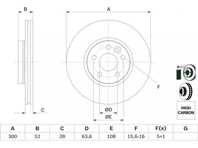 Criteries : Αριθμός οπών 5, Διάμετρος κέντρωσης [mm] 63,55, Διάμετρος κύκλου οπής [mm] 107,95, Διάμετρος οπής έως [mm] 15,8, Ελάχιστο πάχος [mm] 26, Εξωτερική διάμετρος [mm] 300, Επεξεργασία υψηλής ανθράκωσης, Επιφάνεια με επίστρωση, Πάχος δισκόπλακας [mm] 28, πληρεί τις προδιαγραφές ECE ECE-R90, Συμπληρωματικό προϊόν/ πληροφορίες 2 Με βίδες, Τύπος δισκόφρενων αεριζόμενο, Υψος [mm] 52