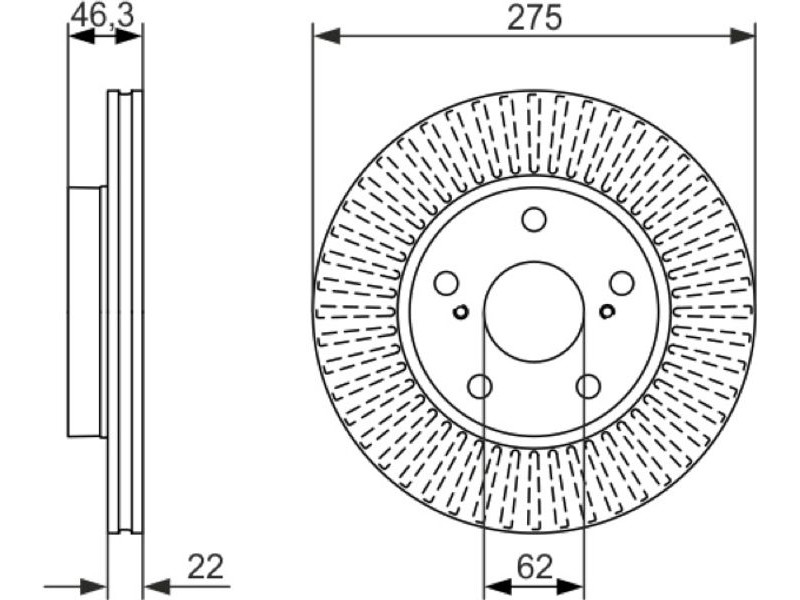 Criteries : Αριθμός οπών 5, Διάμετρος κέντρωσης [mm] 62, Διάμετρος κύκλου οπής [mm] 114,3, Διάμετρος οπής έως [mm] 14,7, Ελάχιστο πάχος [mm] 19, Εξωτερική διάμετρος [mm] 275, Επιφάνεια λαδωμένο, Πάχος δισκόπλακας [mm] 22, πληρεί τις προδιαγραφές ECE ECE-R90, Τύπος δισκόφρενων αεριζόμενο, Υψος [mm] 46,3