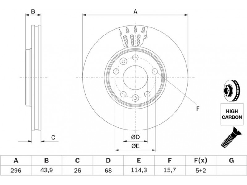 Criteries : Αριθμός οπών 5, Διάμετρος κέντρωσης [mm] 68, Διάμετρος κύκλου οπής [mm] 114,3, Διάμετρος οπής έως [mm] 15,7, Ελάχιστο πάχος [mm] 23,4, Εξωτερική διάμετρος [mm] 296, Επεξεργασία κραματωμ./εξ. ανθρακωμένο, Επιφάνεια λαδωμένο, Πάχος δισκόπλακας [mm] 26, πληρεί τις προδιαγραφές ECE ECE-R90, Συμπληρωματικό προϊόν/ πληροφορίες 2 Με βίδες, Τύπος δισκόφρενων αεριζόμενο, Υψος [mm] 43,9