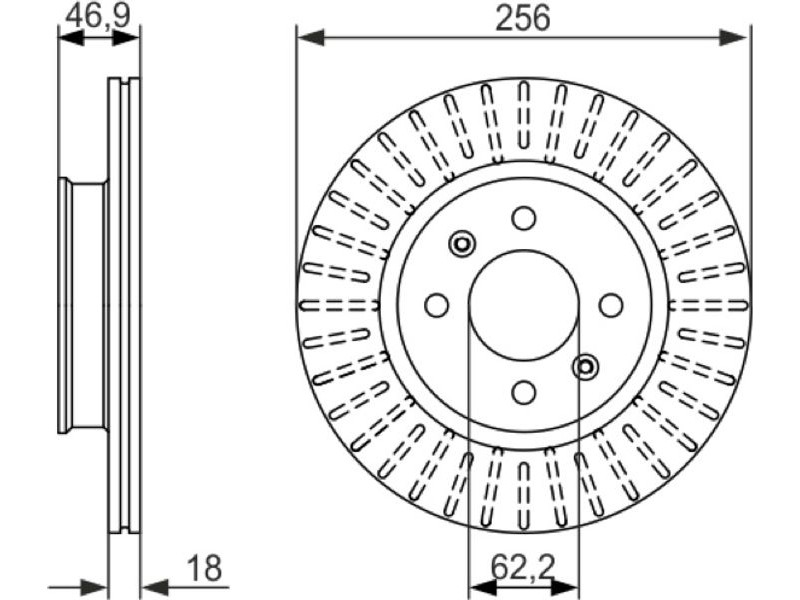Criteries : Αριθμός οπών 4, Διάμετρος κέντρωσης [mm] 62,2, Διάμετρος κύκλου οπής [mm] 100, Διάμετρος οπής έως [mm] 12,6, Ελάχιστο πάχος [mm] 16, Εξωτερική διάμετρος [mm] 256, Επιφάνεια λαδωμένο, Πάχος δισκόπλακας [mm] 18, πληρεί τις προδιαγραφές ECE ECE-R90, Τύπος δισκόφρενων αεριζόμενο, Υψος [mm] 46,8
