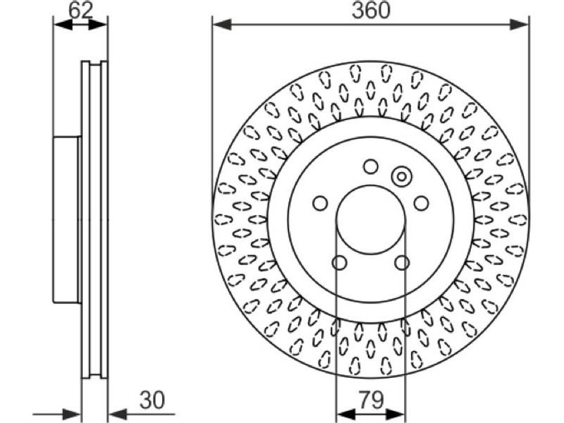 Criteries : Αριθμός οπών 5, Διάμετρος κέντρωσης [mm] 79, Διάμετρος κύκλου οπής [mm] 120, Διάμετρος οπής έως [mm] 15, Ελάχιστο πάχος [mm] 27, Εξωτερική διάμετρος [mm] 360, Επιφάνεια με επίστρωση, Πάχος δισκόπλακας [mm] 30, πληρεί τις προδιαγραφές ECE ECE-R90, Τύπος δισκόφρενων αεριζόμενο, Υψος [mm] 62