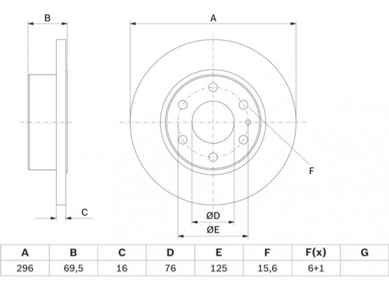 Criteries : Αριθμός οπών 6, Διάμετρος κέντρωσης [mm] 76, Διάμετρος κύκλου οπής [mm] 125, Διάμετρος οπής έως [mm] 15,6, Ελάχιστο πάχος [mm] 13, Εξωτερική διάμετρος [mm] 296, Επιφάνεια λαδωμένο, Πάχος δισκόπλακας [mm] 16, πληρεί τις προδιαγραφές ECE ECE-R90, Συμπληρωματικό προϊόν/ πληροφορίες 2 με δακτύλιο αισθητήρα του ABS, Τύπος δισκόφρενων πλήρες, Υψος [mm] 69,5
