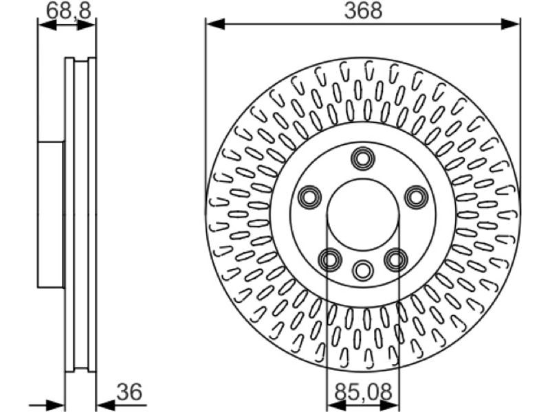 Criteries : Αριθμός οπών 5, Διάμετρος κέντρωσης [mm] 85, Διάμετρος κύκλου οπής [mm] 130, Διάμετρος οπής έως [mm] 15,4, Ελάχιστο πάχος [mm] 34, Εξωτερική διάμετρος [mm] 368, Επεξεργασία υψηλής ανθράκωσης, Επιφάνεια με επίστρωση, Πάχος δισκόπλακας [mm] 36, Συμπληρωματικό προϊόν/ πληροφορίες 2 Με βίδες, Τύπος δισκόφρενων αεριζόμενο, Υψος [mm] 68,6