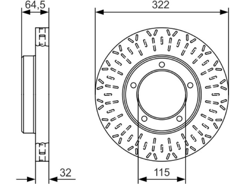 Criteries : Αριθμός οπών 5, Διάμετρος κέντρωσης [mm] 115, Διάμετρος κύκλου οπής [mm] 144, Διάμετρος οπής έως [mm] 12,7, Ελάχιστο πάχος [mm] 30, Εξωτερική διάμετρος [mm] 322, Επιφάνεια λαδωμένο, Πάχος δισκόπλακας [mm] 32, πληρεί τις προδιαγραφές ECE ECE-R90, Τύπος δισκόφρενων αεριζόμενο, Υψος [mm] 64,5