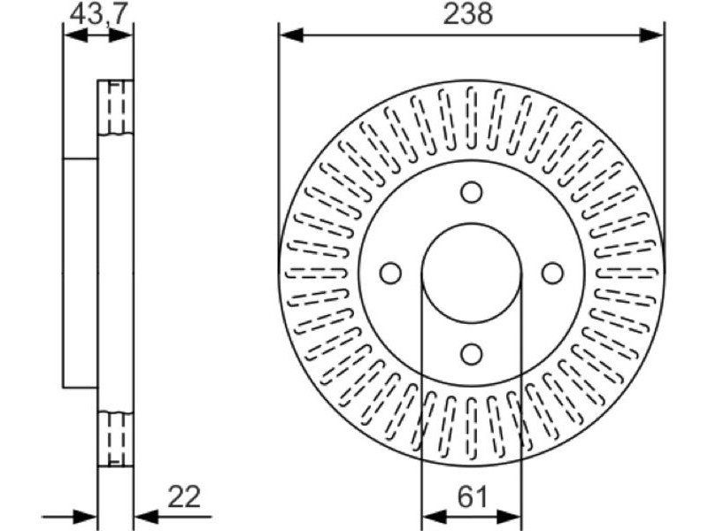 Criteries : Αριθμός οπών 4, Διάμετρος κέντρωσης [mm] 61, Διάμετρος κύκλου οπής [mm] 100, Διάμετρος οπής έως [mm] 12,7, Ελάχιστο πάχος [mm] 20, Εξωτερική διάμετρος [mm] 238, Επιφάνεια λαδωμένο, Πάχος δισκόπλακας [mm] 22, πληρεί τις προδιαγραφές ECE ECE-R90, Τύπος δισκόφρενων αεριζόμενο, Υψος [mm] 43,7