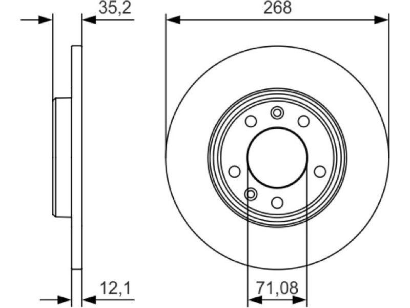 Criteries : Αριθμός οπών 5, Διάμετρος κέντρωσης [mm] 71, Διάμετρος κύκλου οπής [mm] 108, Διάμετρος οπής έως [mm] 13, Ελάχιστο πάχος [mm] 10, Εξωτερική διάμετρος [mm] 268, Επεξεργασία υψηλής ανθράκωσης, Επιφάνεια με επίστρωση, Πάχος δισκόπλακας [mm] 12, πληρεί τις προδιαγραφές ECE ECE-R90, Τύπος δισκόφρενων πλήρες, Υψος [mm] 35