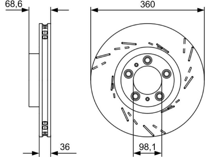 Criteries : Αριθμός οπών 5, Διάμετρος κέντρωσης [mm] 98, Διάμετρος κύκλου οπής [mm] 130, Διάμετρος οπής έως [mm] 15,4, Ελάχιστο πάχος [mm] 34, Εξωτερική διάμετρος [mm] 360, Επεξεργασία υψηλής ανθράκωσης, Επιφάνεια με επίστρωση, κωδικός προϊόντος κατά ζεύγος 0 986 479 D22, Πάχος δισκόπλακας [mm] 36, πληρεί τις προδιαγραφές ECE ECE-R90, Τύπος δισκόφρενων αεριζόμενο, Τύπος δισκόφρενων με εγκοπές, Υψος [mm] 68,6