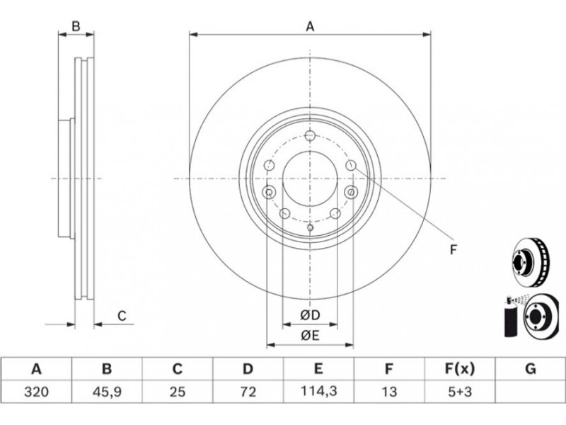 Criteries : Αριθμός οπών 5, Διάμετρος κέντρωσης [mm] 72, Διάμετρος κύκλου οπής [mm] 114,3, Διάμετρος οπής έως [mm] 13, Ελάχιστο πάχος [mm] 23, Εξωτερική διάμετρος [mm] 320, Επιφάνεια με επίστρωση, Πάχος δισκόπλακας [mm] 25, Τύπος δισκόφρενων αεριζόμενο, Υψος [mm] 45,9