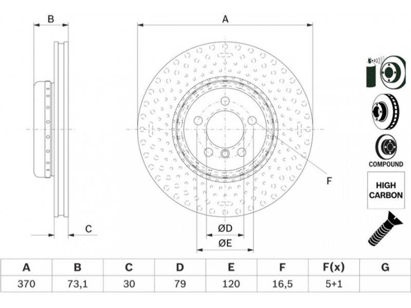 Criteries : Αριθμός οπών 5, Διάμετρος κέντρωσης [mm] 79, Διάμετρος κύκλου οπής [mm] 120, Διάμετρος οπής έως [mm] 16,5, Δώστε προσοχή στις πληροφορίες για το σέρβις , Ελάχιστο πάχος [mm] 28,4, Εξωτερική διάμετρος [mm] 370, Επεξεργασία υψηλής ανθράκωσης, Επιφάνεια με επίστρωση, Πάχος δισκόπλακας [mm] 30, πληρεί τις προδιαγραφές ECE ECE-R90, Συμπληρωματικό προϊόν/ πληροφορίες 2 Με βίδες, Τύπος δισκόφρενων αεριζόμενο, Τύπος δισκόφρενων δισκόπλακα δύο τμημάτων, Υψος [mm] 73,1