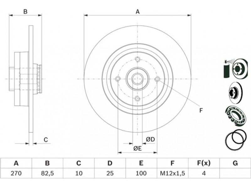 Criteries : Αριθμός οπών 4, Διάμετρος κέντρωσης [mm] 54,98, Διάμετρος κύκλου οπής [mm] 100, Ελάχιστο πάχος [mm] 9, Εξωτερική διάμετρος [mm] 270, Επιφάνεια με επίστρωση, Εσωτερική διάμετρος [mm] 25, Πάχος δισκόπλακας [mm] 10, πληρεί τις προδιαγραφές ECE ECE-R90, Συμπληρωματικό προϊόν/ πληροφορίες 2 με δακτύλιο αισθητήρα του ABS, Συμπληρωματικό προϊόν/ πληροφορίες 2 με ρουλεμάν τροχού, Τύπος δισκόφρενων πλήρες, Υψος [mm] 82,5