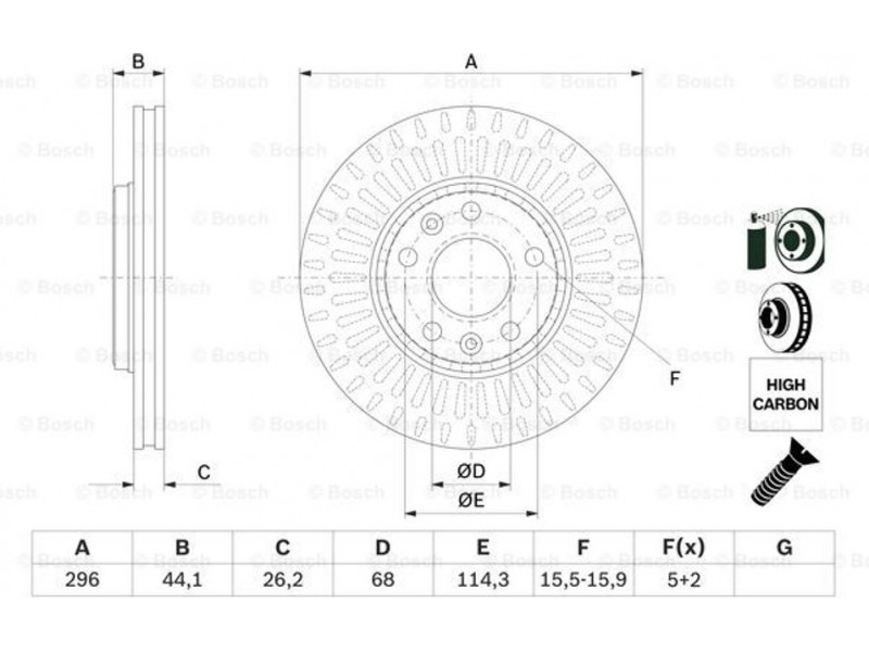 Criteries : Αριθμός οπών 5, Διάμετρος κέντρωσης [mm] 68, Διάμετρος κύκλου οπής [mm] 114,3, Διάμετρος οπής έως [mm] 15,75, Ελάχιστο πάχος [mm] 23,4, Εξωτερική διάμετρος [mm] 296, Επεξεργασία κραματωμ./εξ. ανθρακωμένο, Επιφάνεια με επίστρωση, Πάχος δισκόπλακας [mm] 26, πληρεί τις προδιαγραφές ECE ECE-R90, Συμπληρωματικό προϊόν/ πληροφορίες 2 Με βίδες, Τύπος δισκόφρενων αεριζόμενο, Υψος [mm] 43,9