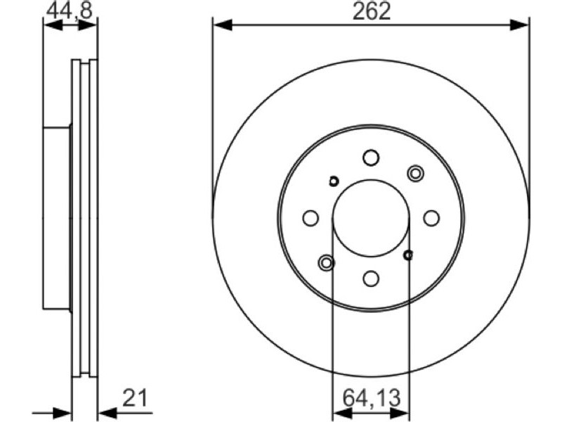 Criteries : Αριθμός οπών 4, Διάμετρος κέντρωσης [mm] 64,13, Διάμετρος κύκλου οπής [mm] 100, Διάμετρος οπής έως [mm] 12,7, Ελάχιστο πάχος [mm] 19, Εξωτερική διάμετρος [mm] 262, Επιφάνεια λαδωμένο, Πάχος δισκόπλακας [mm] 21, πληρεί τις προδιαγραφές ECE ECE-R90, Τύπος δισκόφρενων αεριζόμενο, Υψος [mm] 44,8