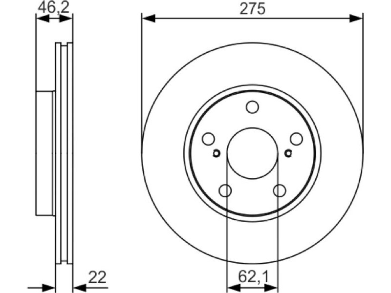 Criteries : Αριθμός οπών 5, Διάμετρος κέντρωσης [mm] 62, Διάμετρος κύκλου οπής [mm] 114,3, Διάμετρος οπής έως [mm] 14,5, Ελάχιστο πάχος [mm] 19, Εξωτερική διάμετρος [mm] 275,2, Επιφάνεια λαδωμένο, Πάχος δισκόπλακας [mm] 22, Τύπος δισκόφρενων αεριζόμενο, Υψος [mm] 46,4