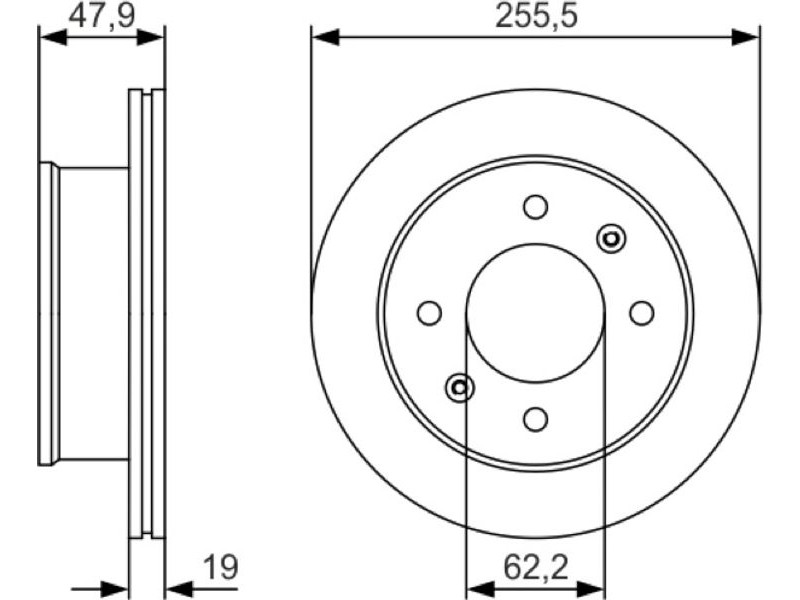 Criteries : Αριθμός οπών 4, Διάμετρος κέντρωσης [mm] 62,2, Διάμετρος κύκλου οπής [mm] 100, Διάμετρος οπής έως [mm] 12,6, Ελάχιστο πάχος [mm] 17, Εξωτερική διάμετρος [mm] 255,5, Επιφάνεια λαδωμένο, Πάχος δισκόπλακας [mm] 19, πληρεί τις προδιαγραφές ECE ECE-R90, Τύπος δισκόφρενων αεριζόμενο, Υψος [mm] 47,9
