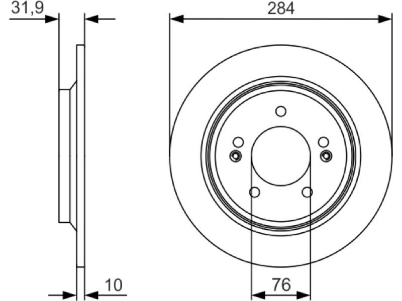 Criteries : Αριθμός οπών 5, Διάμετρος κέντρωσης [mm] 76, Διάμετρος κύκλου οπής [mm] 114,3, Διάμετρος οπής έως [mm] 12,4, Ελάχιστο πάχος [mm] 8,4, Εξωτερική διάμετρος [mm] 284, Επιφάνεια λαδωμένο, Πάχος δισκόπλακας [mm] 10, πληρεί τις προδιαγραφές ECE ECE-R90, Τύπος δισκόφρενων πλήρες, Υψος [mm] 31,9