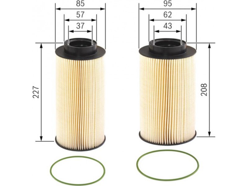 Criteries : Διάμετρος [mm] 95, Εξωτερική διάμετρος 2 [mm] 85, Εσωτερική διάμετρος 1 [mm] 43, Εσωτερική διάμετρος 2 [mm] 37, Παραλλαγή φίλτρου Στοιχείο φίλτρου, Ύψος 2 [mm] 227, Υψος [mm] 207,5